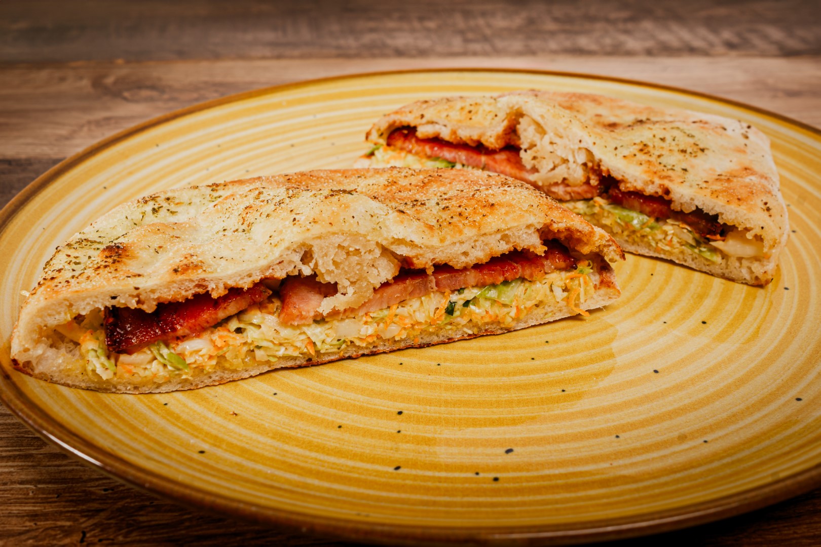 Panini,salata coleslaw,sos bbq,carne de porc